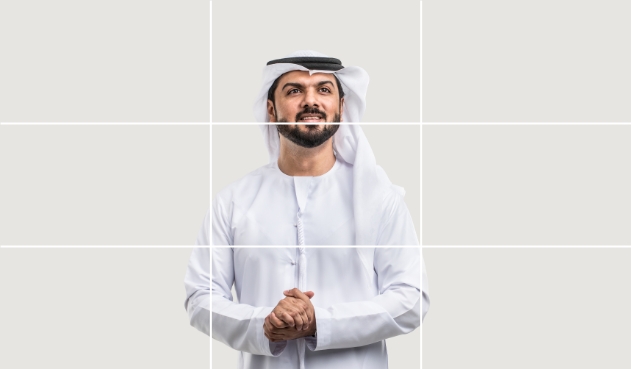 The eye-line should be in the blank space when using the rule of thirds. This rule also applies to small size containers.